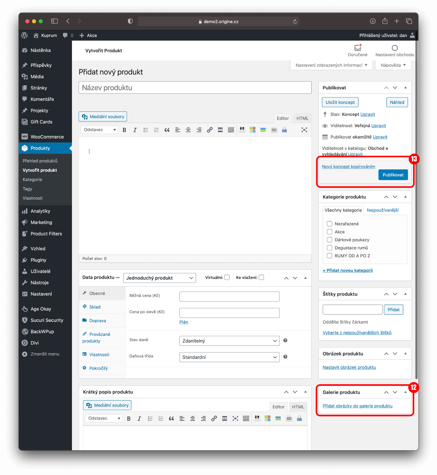 Každý produkt potřebuje i obrázek (11) a také galerii (12).