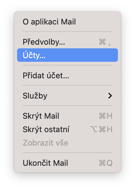 na Macu kliknete na Mail > Účty.