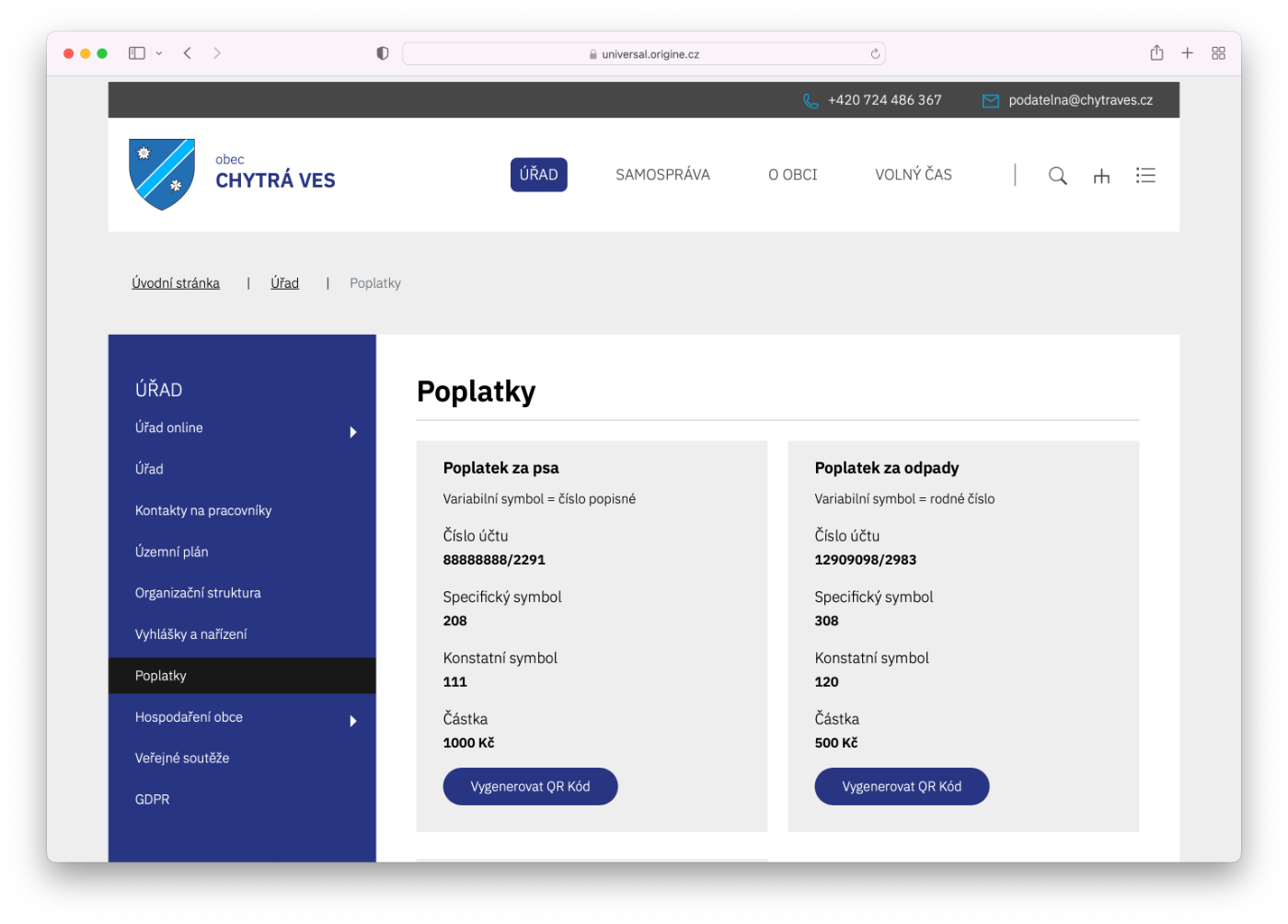 Modul pro zobrazení platebních informací pro občany např. pro placení poplatků.