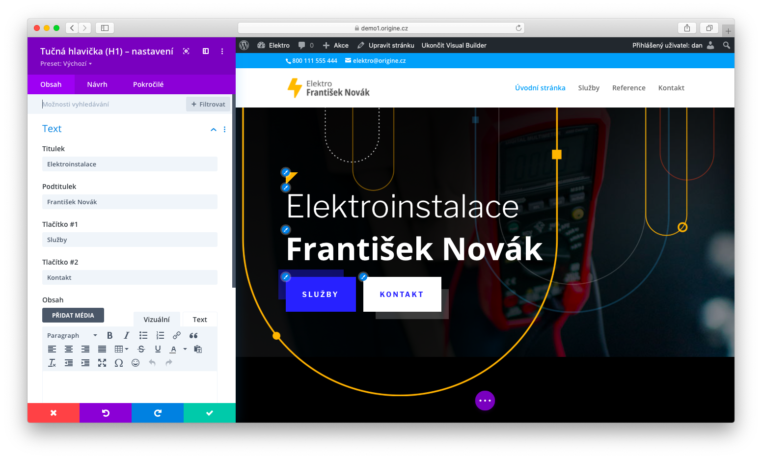 - webdesignový návrh v systému Divi