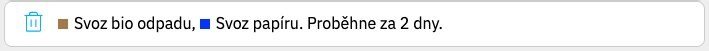 V obou zobrazení lze nastavit barvu, např. pro svoz papíru modrá, svoz skla zelená.