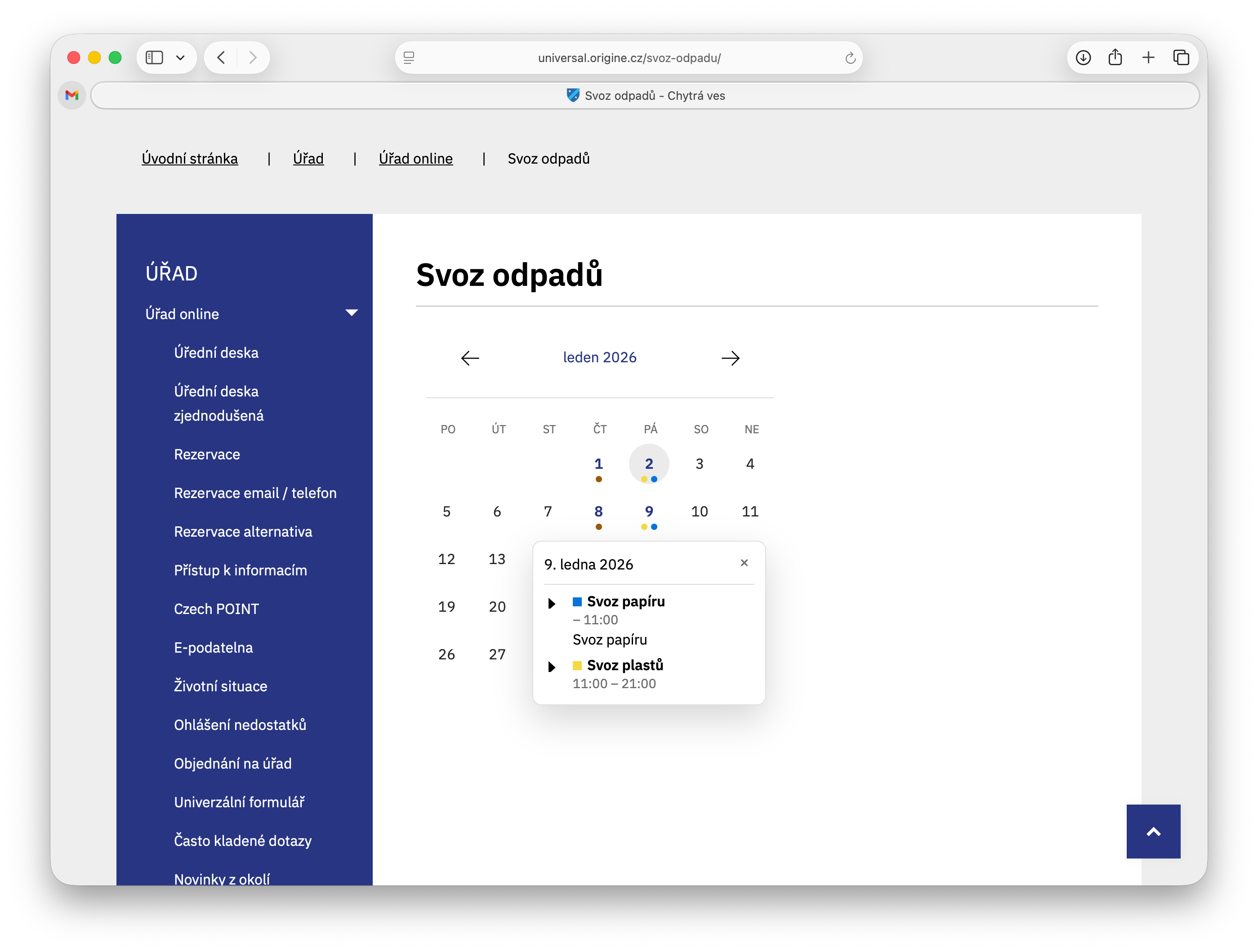Modul lze rovněž využít pro zobrazení pravidelných termínů, například svozu odpadu.