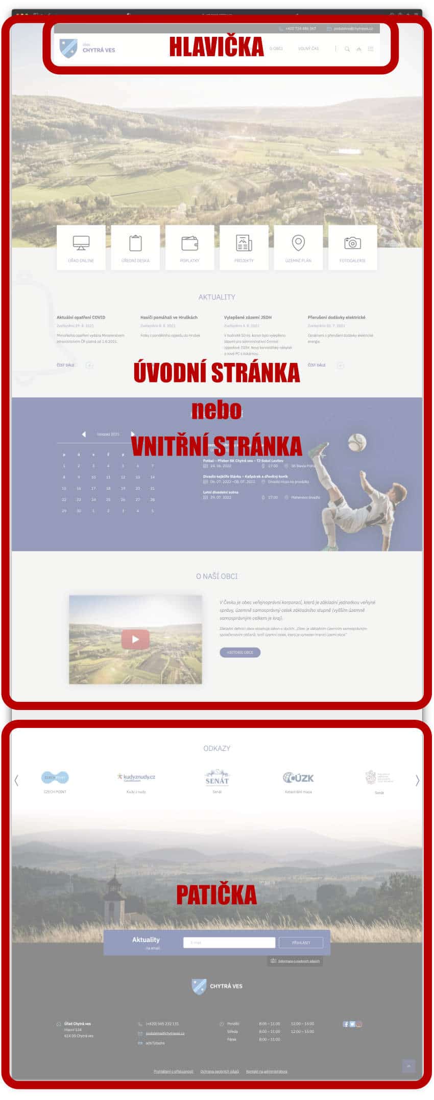 Následující popis ukazuje, kde lze v administraci nastavit nebo upravit jednotlivé části webu se šablonou Universal.