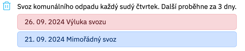 - Název termínu se zobrazí na webu a dopočítá se počet dní. Výluky a termíny na určitý den se pak zaobrazí na webu včetně data: