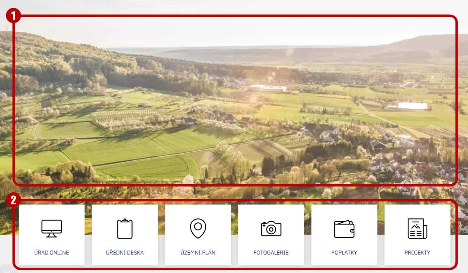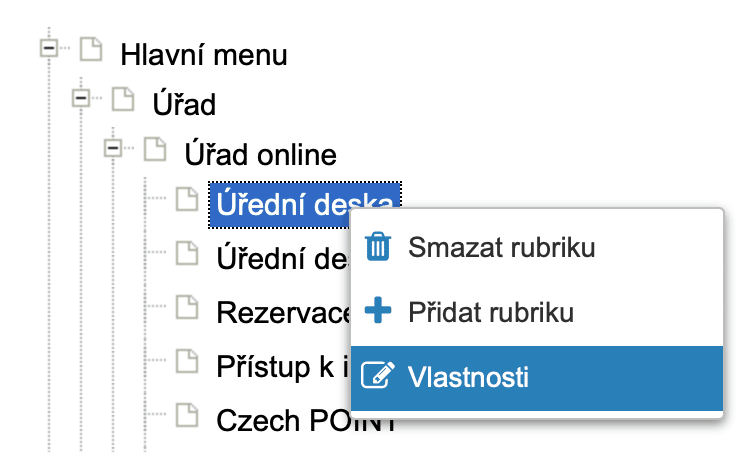 Rychlé odkazy (2) se upraví ve vlastnostech příslušné rubriky (Pravým tlačítkem > Vlastnosti). Je nutno nastavit Blok na úvodní stránce: ANO a vybrat ikonku Ikona / obrázek z knihovny.