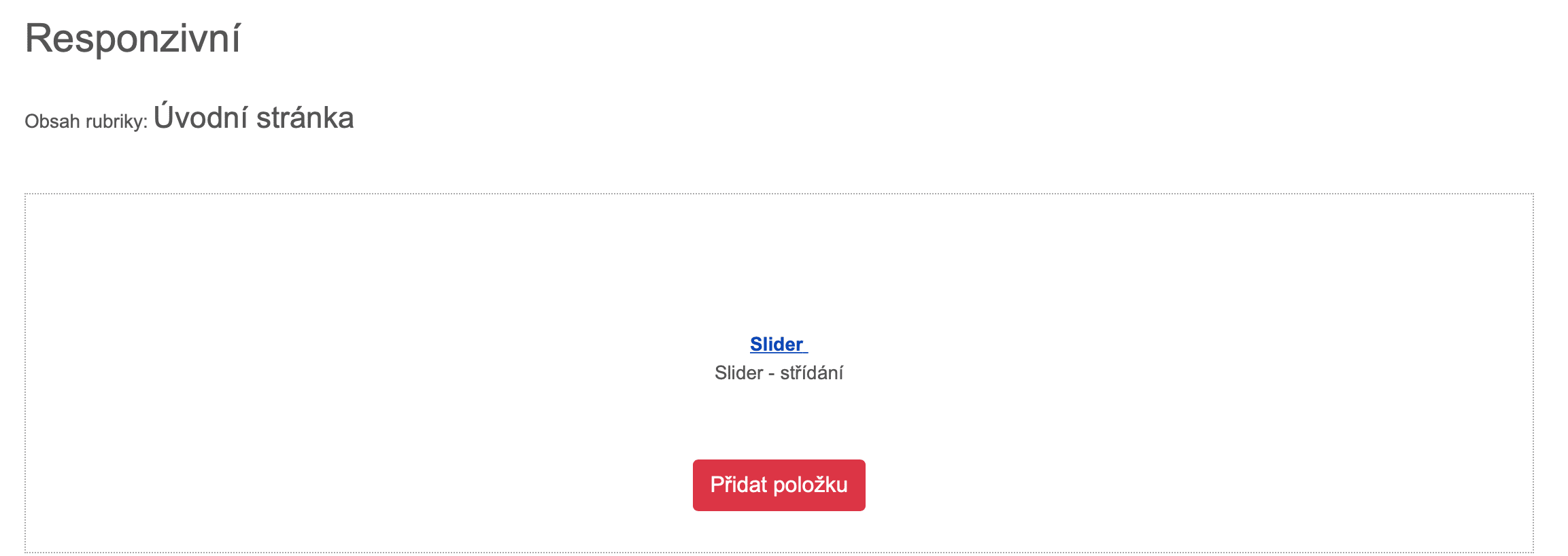 Další sekce lze přidávat a tvořit v režimu responzivního vkládání (Viz Tipy k ovládání) nebo níže v kapitole Další moduly na úvodní stránku ↓.